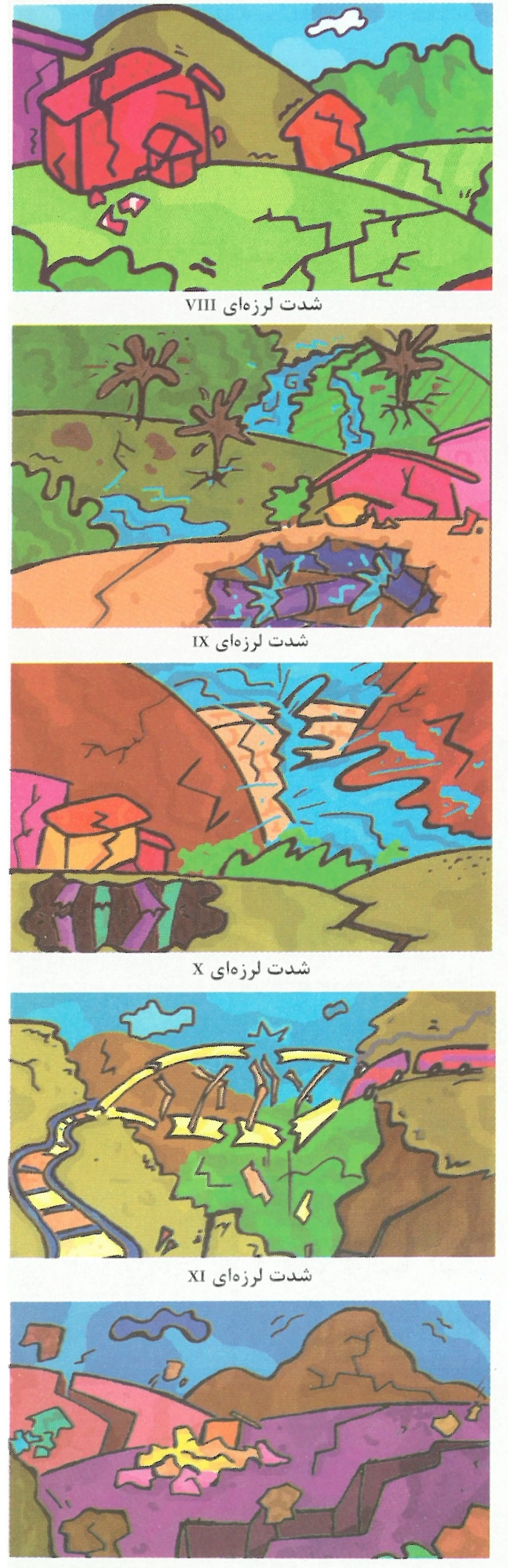 Displaying the intensity of the earthquake from low to high. (Narrative of images from left to right and top to bottom )