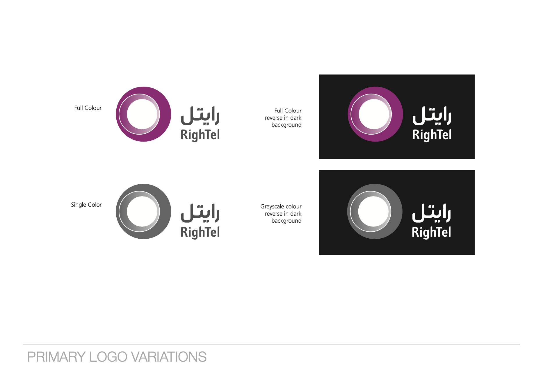 The Rightel logo uses a circular motif to symbolize connectivity and continuous communication, essential in telecom. The curved lines represent signal flow, emphasizing fluidity. To differentiate from competitors, Rightel adopted a vibrant magenta and dynamic design, standing out from the more conservative, angular logos of its competitors, appealing to a younger, tech-savvy audience.