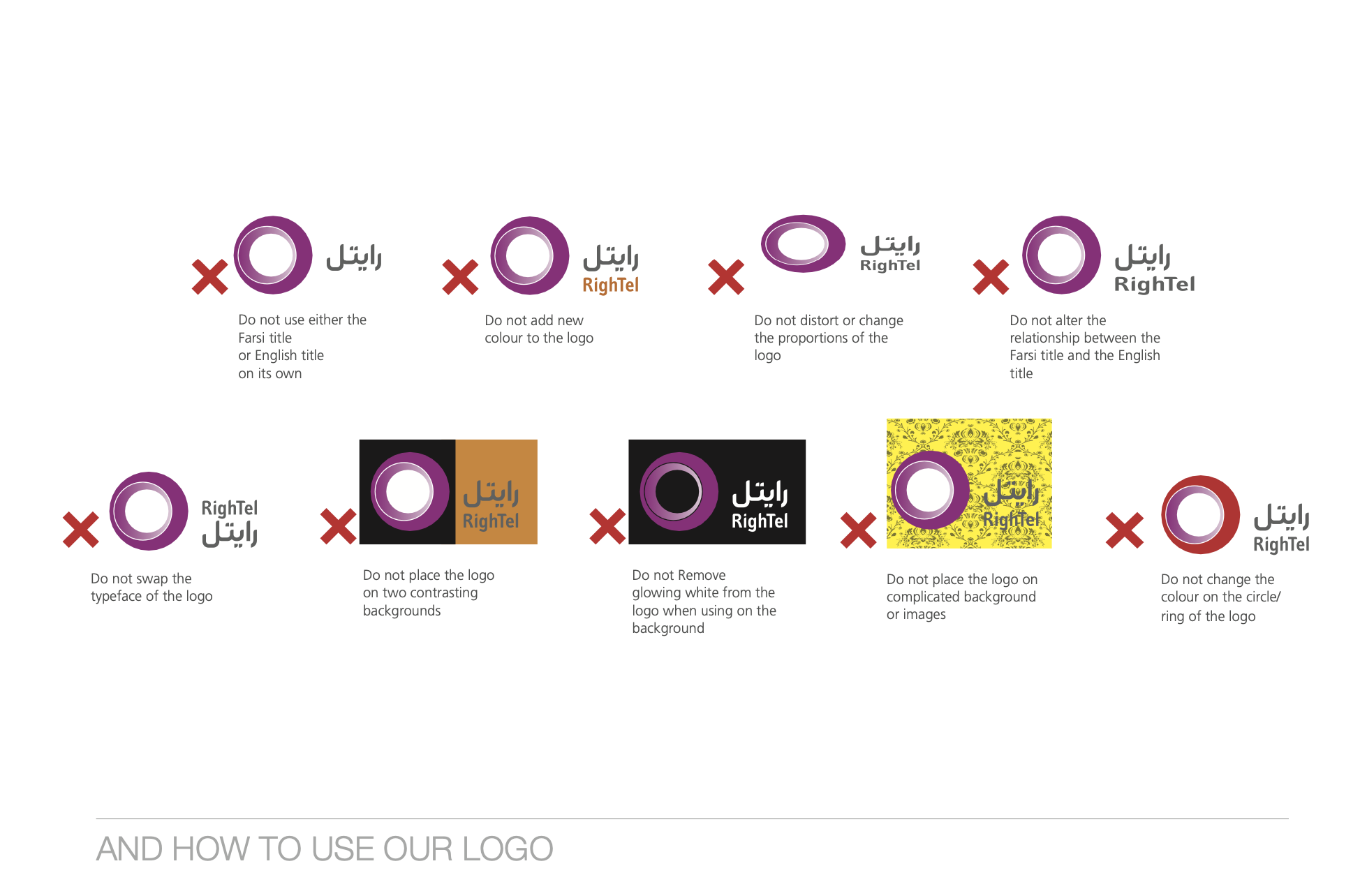 As part of enhancing Rightel's brand guidelines and responding to the broader and younger target market, we made several updates to the logo’s placement and color palette. These updates introduced new do's and don'ts in the brand guideline to ensure consistent usage while aligning with the refreshed brand identity.
