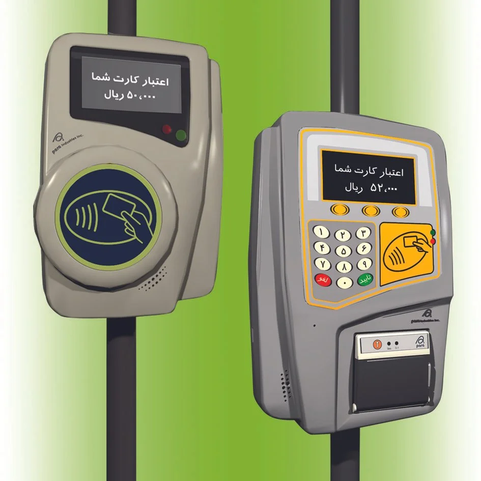 The image displays the bus card scanner alongside the model used in the driver’s area, which includes additional elements for operational use.