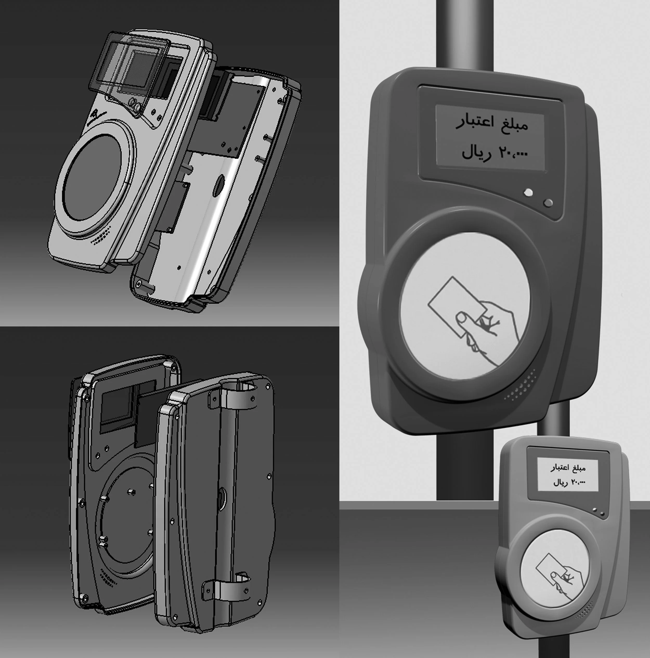 A detailed look at the bus card scanner, showcasing its user-friendly exterior and an exploded view of its robust internal components, designed for easy installation, maintenance, and reliable performance in busy public transit settings.